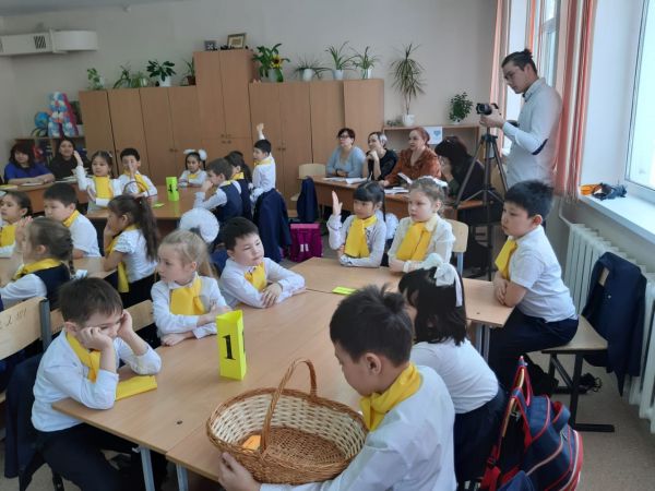 Орыс тілі апталығы аясында 2Ә сыныбында орыс тілі пәнінен «Теремок» ертегісіне қонаққа» тақырыбында ашық сабақ өтті – мұғалім Умирзакова Б.Е. Сабақта оқытудың бе…