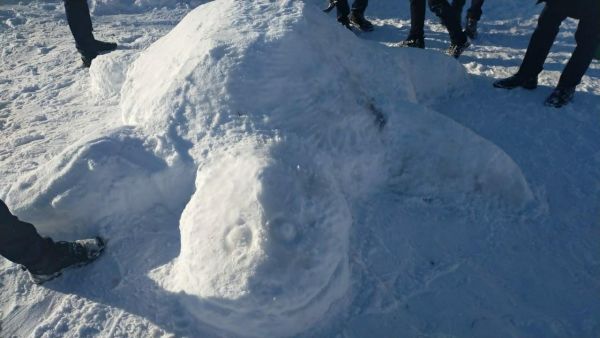 9 Б сынып оқушылары тасбақаны қардан жасады.