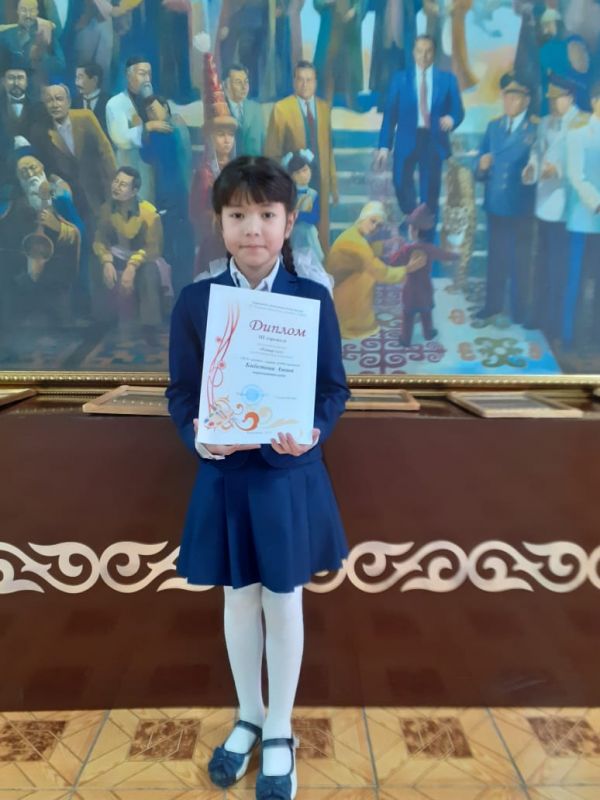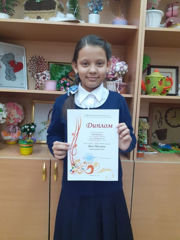 1 "ж" сынып оқушысы Бибетова Аишаны "Менің отбасымның портреті" атты қалалық сурет байқауында 3 орын алғаны үшін дипломмен құттықтаймыз.
