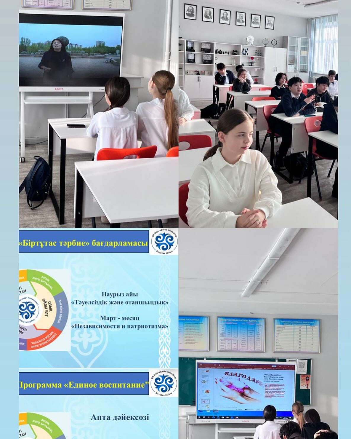 «Біртұтас тәрбие» бағдарламасы. Наурыз «Тәуелсіздік және отаншылдық айы» Апта дәйексөзі: «Патриотизм – ата-анаңды құрметтей білуің...»(Б.Момышұлы)»…