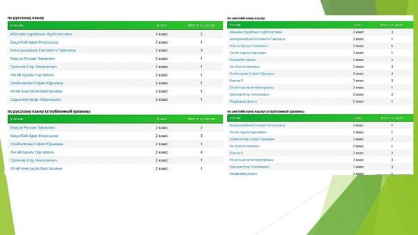 "Инфоурок" олимпиадасы келесі пәндер бойынша өткізіледі: орыс тілі, ағылшын тілі, математика. Тапсырмалар базалық және тереңдетілген деңгейге бөлінеді. Олимпиадаға 2 «Г» сыныбы…