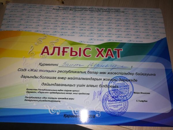 5 "Г" сынып оқушысы Ниязалиева Томирис Шығыс биінен Қазақстан Ашық Чемпионатында 2 орын иеленді. Томиристі құттықтаймыз! Алдағы уақытта табыс пен жеңіс тілейміз!