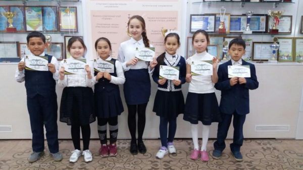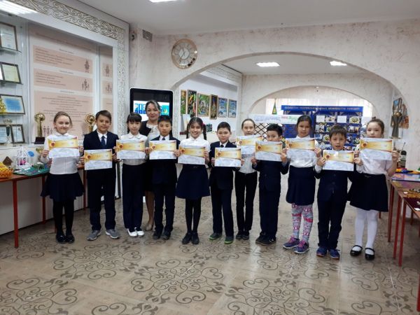 Қазақ тілі пәнінен НИО олимпиадасына қатысып І орынға ие болған 4 «Г» сынып оқушылары: Закирова Лейла, Дюсембаева Дильнур, Бибетова Аружан, Вибе Анна, Ақберді Алиби, Ибраев Даниал, Икен…