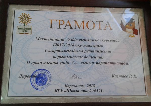 Бастауыш сыныптар рейтигісі нәтижесі бойынша  3 Ж сыныбы 2 орын иеленді. Оқушылар мен сынып жетекшісі Е.Ф. Богданованы жеңісімен құттықтаймыз!!!