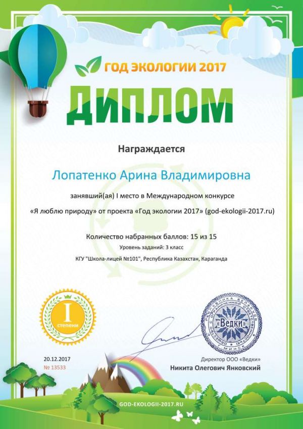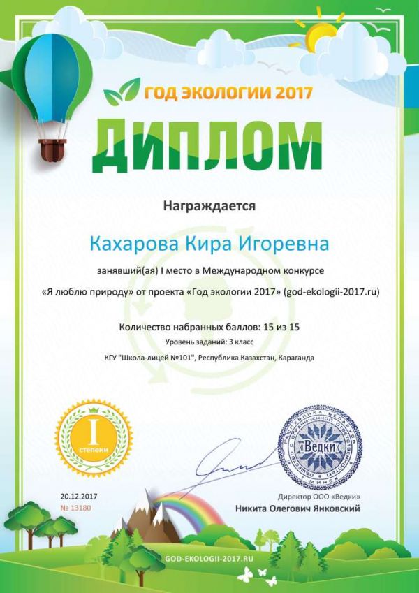 «Геоград» жобасы аясына 3 Ж сынып оқушылары халықаралық экологиялық конкурсқа қатысты. Лопатенко Арина, Тулеуова Жансая және Кахарова Кира 1 орын иеленді. Жеңімпаздарды…
