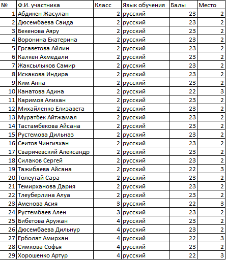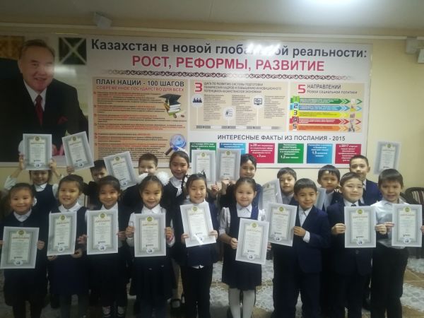 Қазақ тілінен 2 орын иеленген 10А сынып оқушысы Ким Джейсанды, математикадан 3 орын иеленген 10 Б сынып оқушысы  Джалаев Теймуразды мақтан етеміз. Қазақ тілі пәнінің мұғалімі Багжанова Баян Н…