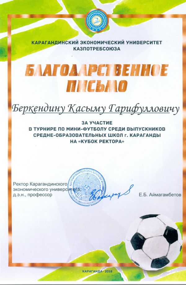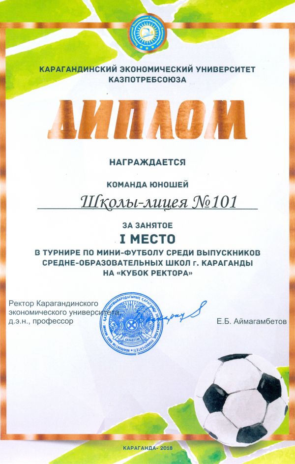2018 ж. 11 қаңтарда Қарағанды экономикалық университетінде жалпы білім беретін мектептер арасында ректор жүлдесіне футболдан облыстық турнир өтті. Турнирге облыстың 24 командасы қатысты.…