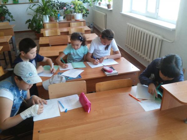 07.06.2016г. “Funny English” лагері. Балалар қызықты сабаққа қатысып, өздерінің грамматикадан, фонетикадан алған білімдерін бекітті. Қызықты ағылшын әуенімен балалар денешынықтыру жаттығ…