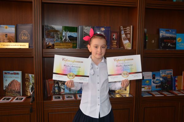 Ученица 4Ж класса Каверина Диана во IIМеждународном фестивале «Звезда востока», который проходил в г.Караганде. Она награждена медалью и дипломом IIстепени в номинации «Эстрадный в…