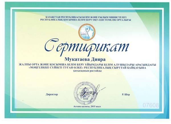2 ж сынып оқушысы Хорошенко Полина – келесі байқаулардың жеңімпазы: 1.       Гран-При Мини(Ресейдің үздік моделі) 2015 ж, Мәскей, наурыз; 2.   …