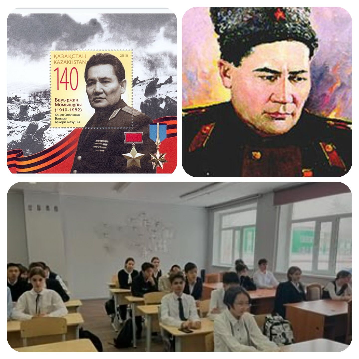 Біртұтас тәрбие жоспарына сәйкес 6 А сыныбында тәрбие сағатында Бауыржан Момышұлының туған күніне орай, батырдың ерлік пен Отан алдындағы патриоттық рухы туралы әңгімеленіп, ұлы тұлғаның төл шығарма…