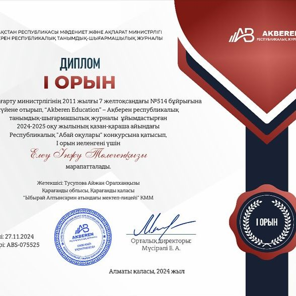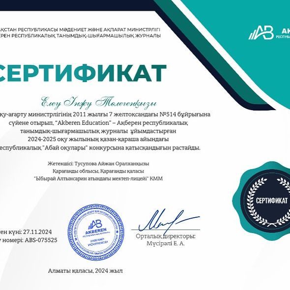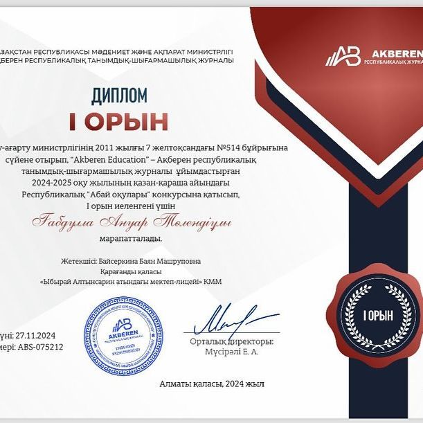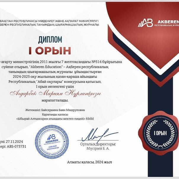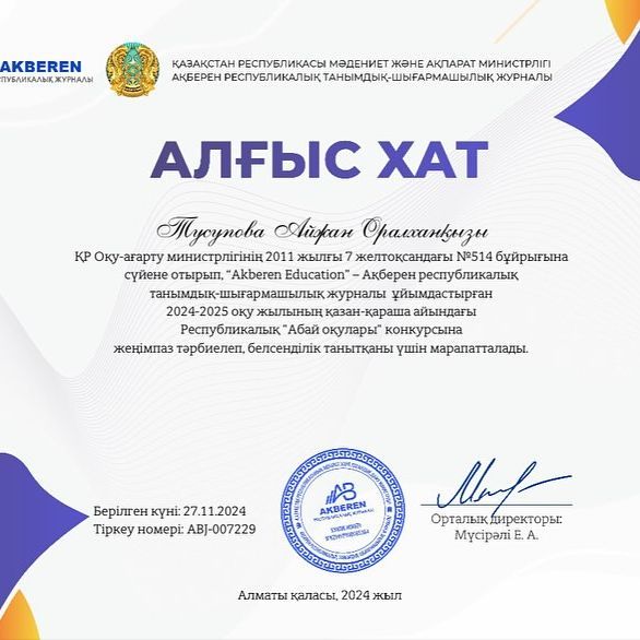 2024 жылдың 25 қарашасында Қарағанды қалалық ІІБ Есірткі қылмысына қарсы күрес бөлімінің қызметкері, аға анықтаушы О.В.Мельникованың қатысуымен жалпы мектептік ата-аналар жиналысы өткізілді. Тақыр…