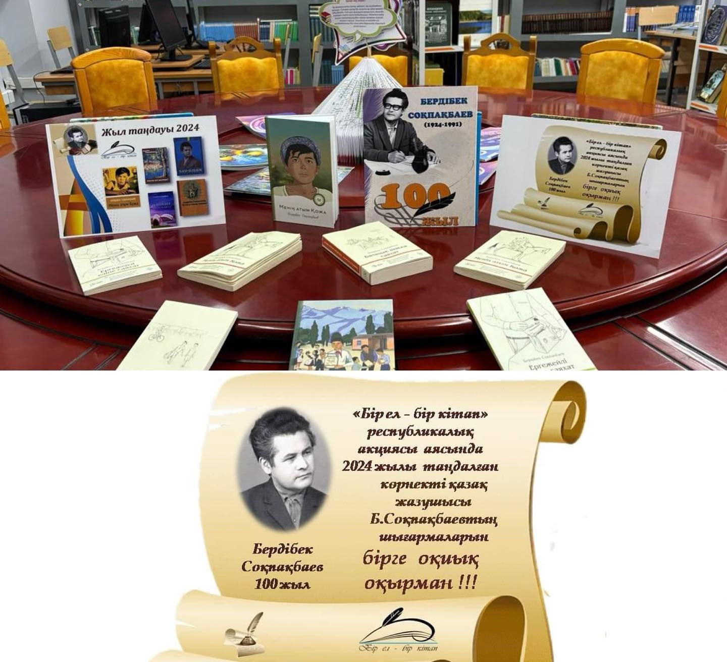 2024 жылы “Бір ел -бір кітап” республикалық акциясы бойынша жыл таңдауы жасалып, балалар әдебиетінің классигі Бердібек Соқпақбаевтың шығармаларын оқу ұсынылды. Осыған орай мектеп кітапха…