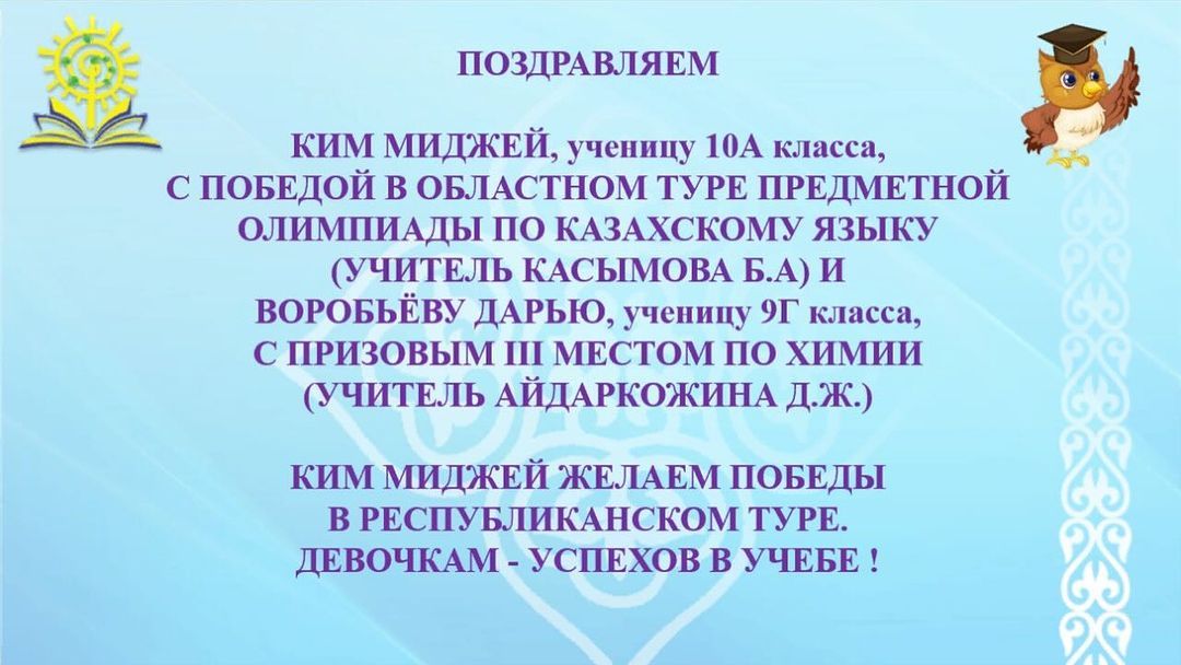 Балаларды пәндік олимпиаданың облыстық турындағы жеңісімен құттықтаймыз