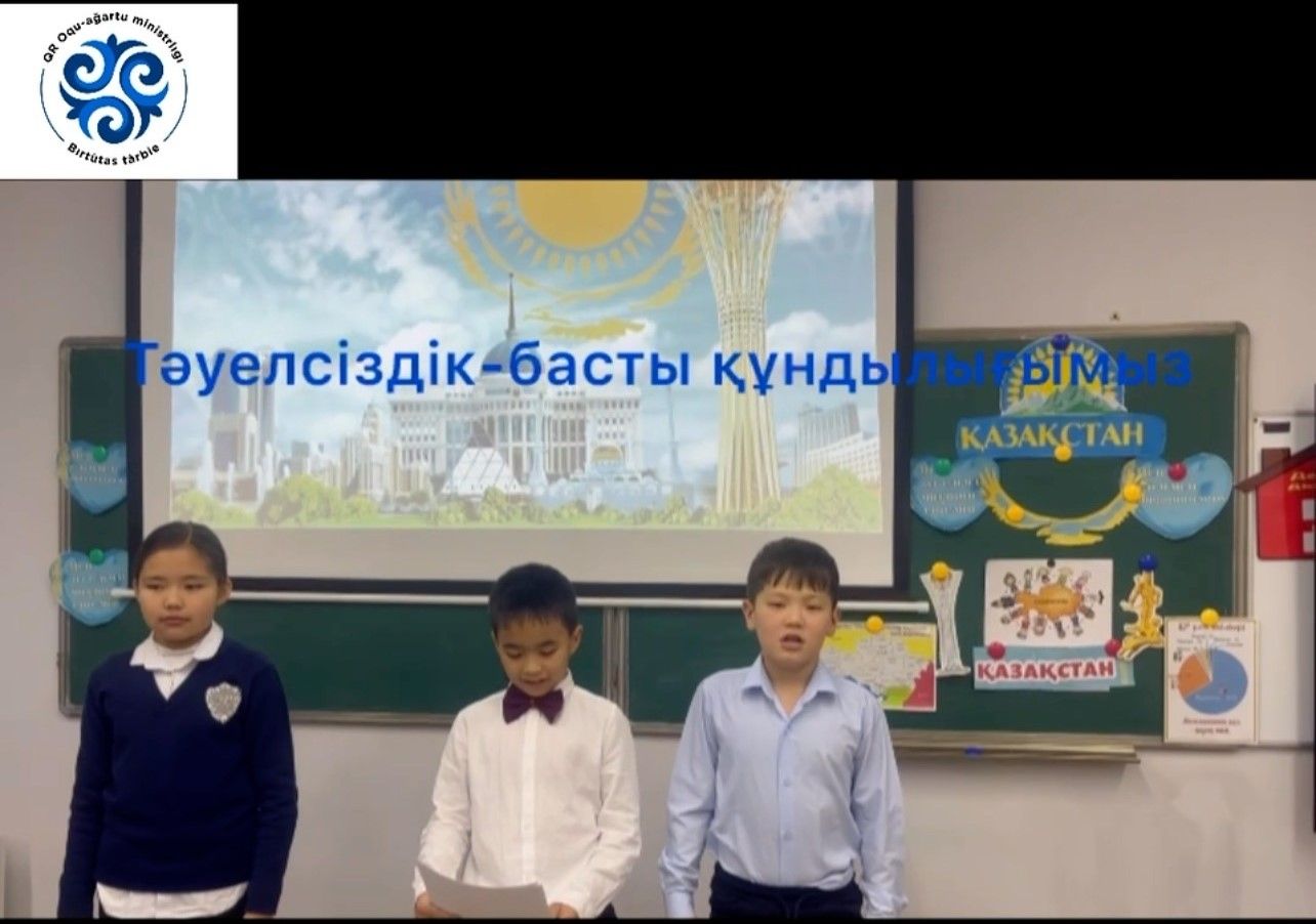 4 ”Б” сыныбында “Тәуелсіздік- басты құндылығымыз” тақырыбында тәрбие сағаты өтті. Сынып жетекшісі:Джолимова Ж.З