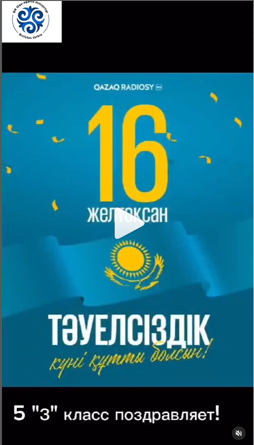 5 «В» сынып оқушыларынан “Егеменді елдігім- Тәуелсіз теңдігім” атты құттықтау челленджін қабыл алыңыздар.