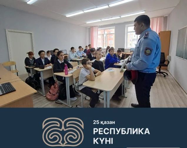 Мектебімізде “Нашақорлыққа қарсы күрес, терроризм актсі бойынша жалған ақпарат беру, интернет алаяқтары” тақырыбында жоғары сынып оқушыларымен Қазыбек би ауданы полиция бөлімінің қызметк…