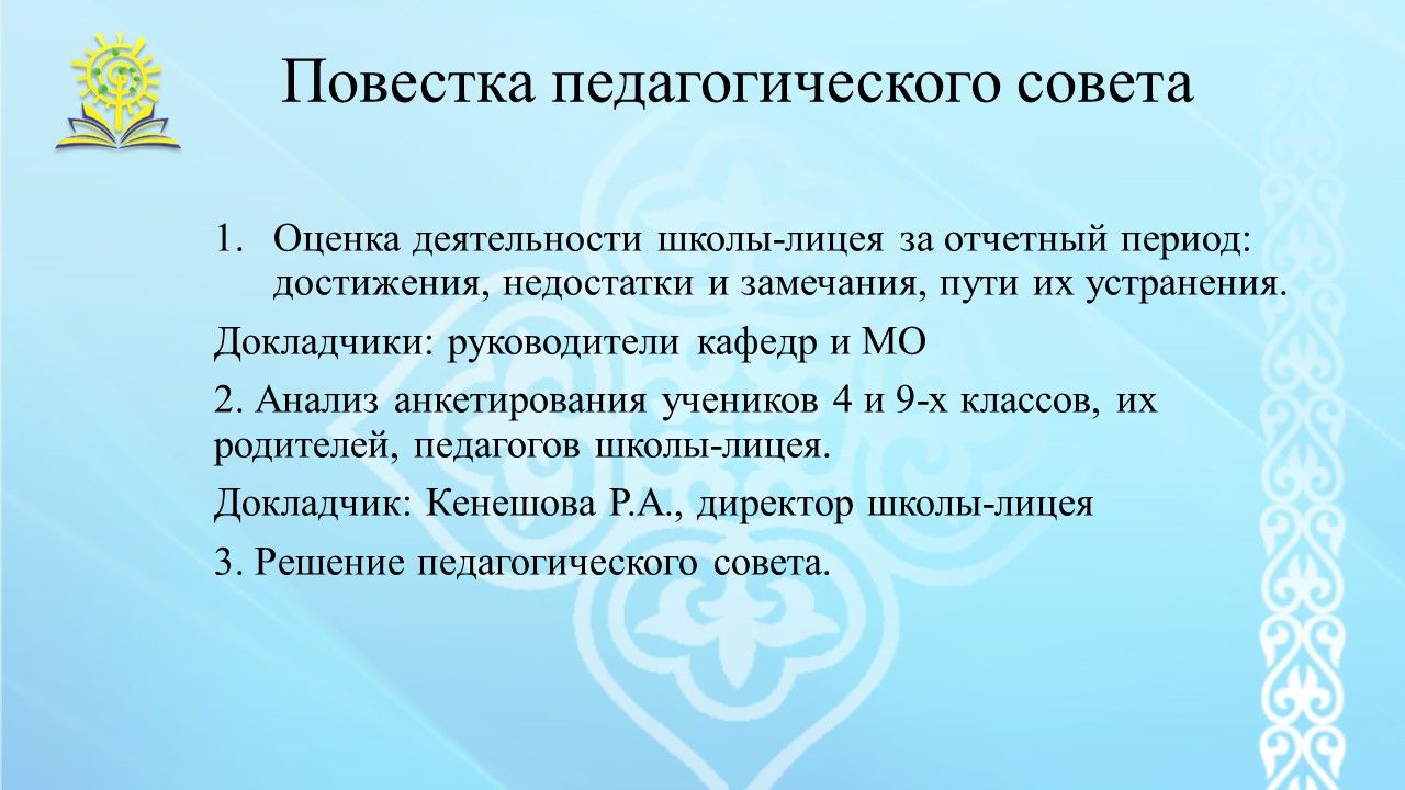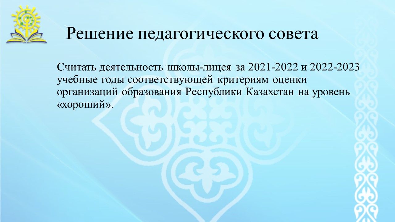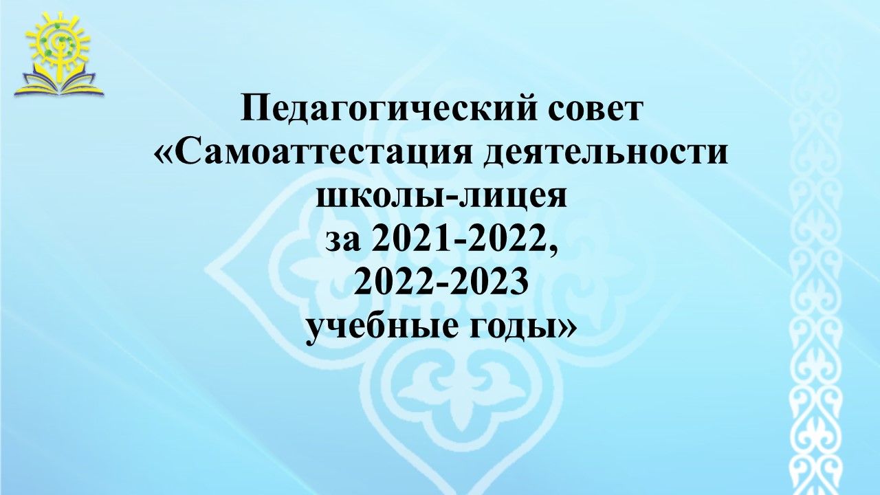 Педагогический совет«Самоаттестация деятельности школы-лицея за 2021-2022, 2022-2023 учебные годы»