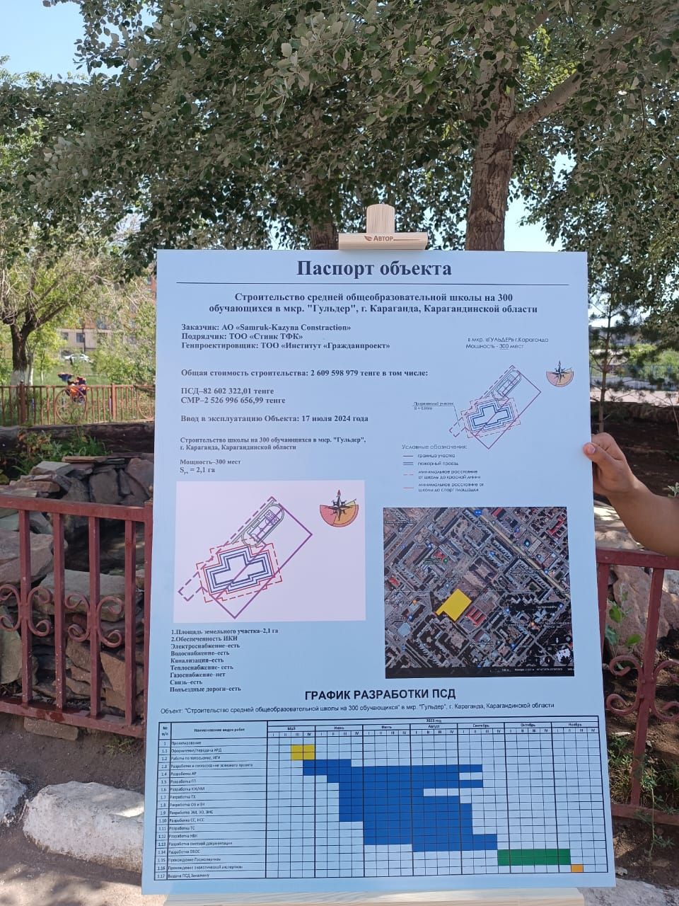 Отдел образования г.Караганды информирует о начале строительства здания школы на 300 мест (в одну смену) в микрорайоне Гульдер.
