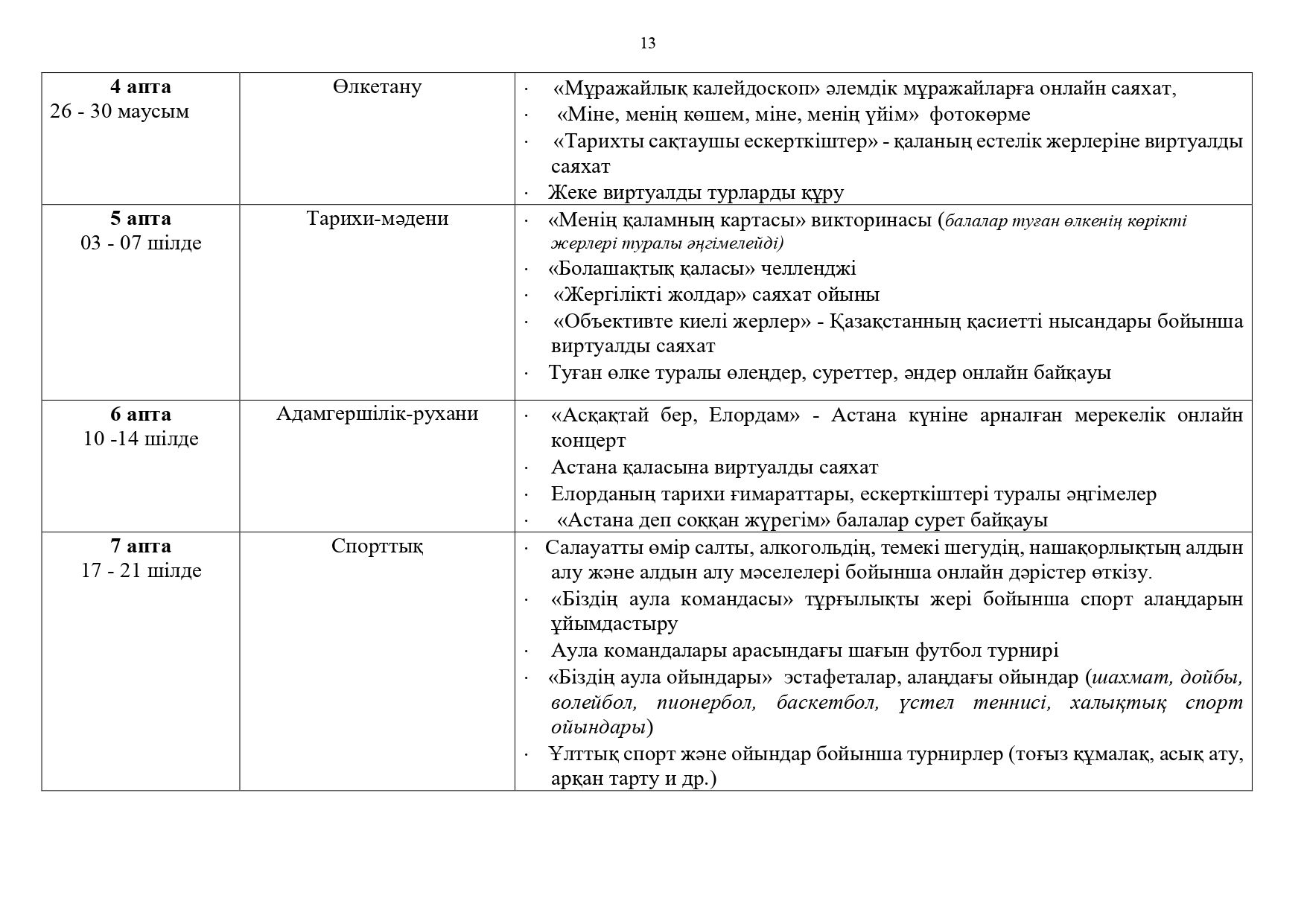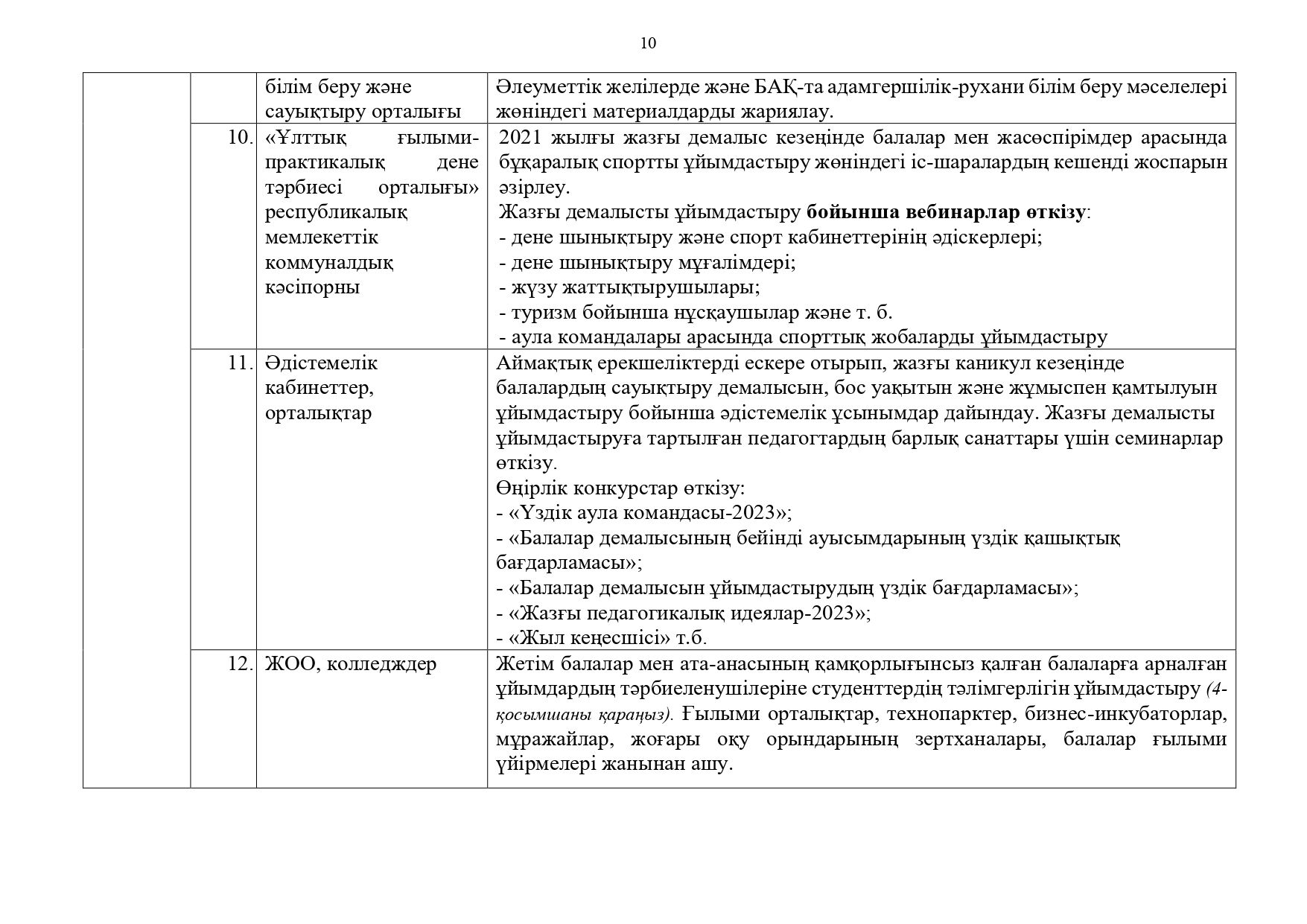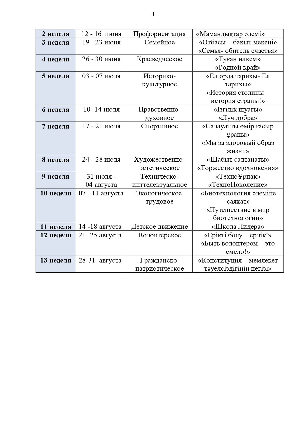 «Қазақстан – бақытты балалық мекені!» каникул кезеңіндегі балалардың сауықтырылу демалысын, бос уақытын және жұмыспен қамтылуын ұйымдастыру ТҰЖЫРЫМДАМАСЫ