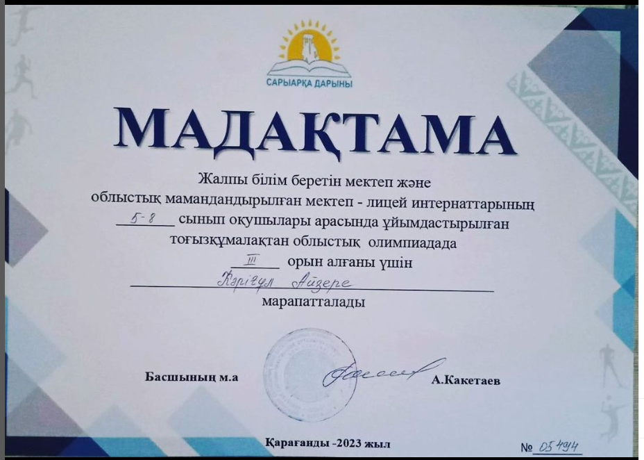 Тоғызқұмалақ жарысынан Кәріғұл Айзерені lll орын алған жүлдесімен құттықтаймыз!