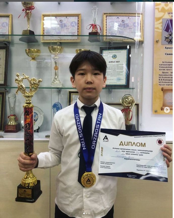 Ашихара каратэ Федерациясының ұйымдастырумен Астана қаласының ашық чемпионатында 1 орын алғаны үшін 7 "И" сынып оқушысы Сағындық Арсенді жеңісімен құттықтаймыз.