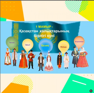 1 мамыр -Қазақстан халықтарының бірлігі күніне арналған «Татулық -достықтың киелі бесігі» тақырыбында 9б сыныбында сынып сағвты өтті