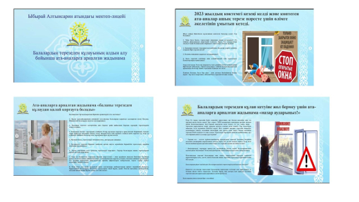 2023 жылдың 3 сәуірінде 7 "Ә" сыныбында "Денсаулық" құндылығына арналған және "Қауіпсіз терезелер" тақырыбына арналған сынып сағаты өтті. Сынып жетекшісі: Сагибае…