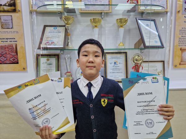 Поздравляем ученицу 10Ә класса Саипназар Нурай с победой, за занятое 2 место в областной Олимпиаде школьников по русскому языку и литературе. КарУ им. Е.Букетова. учитель Беркамалова Б.Н.