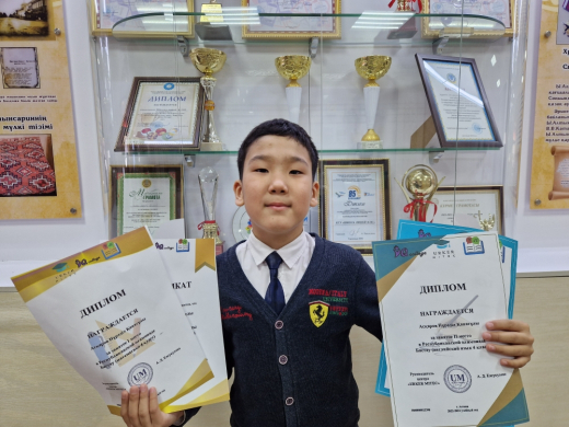 Поздравляем ученика 4Ж класса Асқаров Нұрәділя за занятое 1 место в Республиканской олимпиаде «Бастау» по математике и 2 место по английскому языку Желаем Нұрәділю новых…