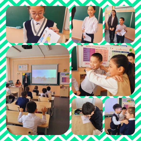 3 "А" сыныбымен "Дос болайық бәріміз" атты тренинг өткізілді. Мақсаты: сынып ұжымын біріктіру және оқушылардың бір-бірімен тиімді қарым-қатынасын құруын қалыптастыру. Қолайлы пси…