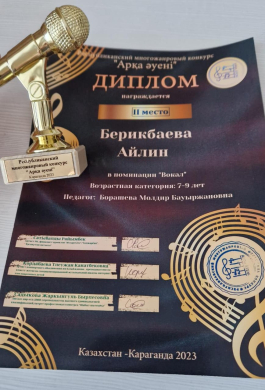 Мектебіміздің 3 Б сынып оқушысы Берикбаева Айлин Республикалық Арқа әуені конкурсына қатысып, Вокал номинациясы бойынша жүлделі 2 орынға ие болды. Айлиннің жеңісі құтты болсын, өнері өрлей берсін де…