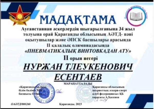 Есентаев Нуржан Тлеукенович II орын иегері