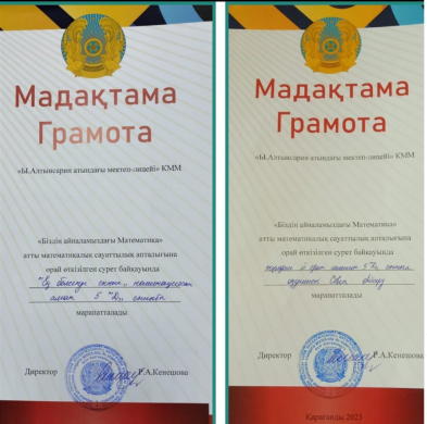 "Біздің айналамыздағы математика" атты математикалық сауаттылық апталығына орай 23.01-27.01.2023ж.аралығында өткізілген сурет байқауында "Ең белсенді сынып" номенациясын…
