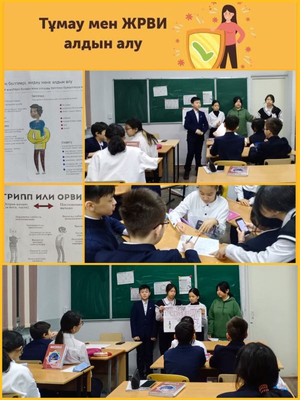 23.01 күні 6 “Г” сыныбында “Тұмау және ЖРВИ белгілерін алдына алу” тақырыбында сынып сағаты өткізілді. Сынып сағаты барысында тұмау болған жағдайда маска тағу үлгісі көрсетіл…