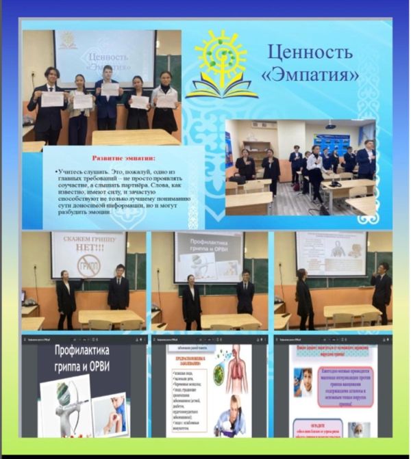 Ы.Алтынсарин атындағы мектеп-лицейінің 7«А» сыныбында «Эмпатия тақырыбын жалғастыру», «Тұмау мен ЖРВИ алдын алу » тақырыбында сынып сағаты өтті.