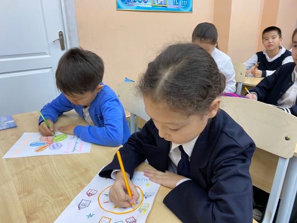 Сынып сағаты: «Менің құқығым». Оқушылар өз құқықтары мен міндеттерін ортаға салып, пікір алмасып, сурет салды.