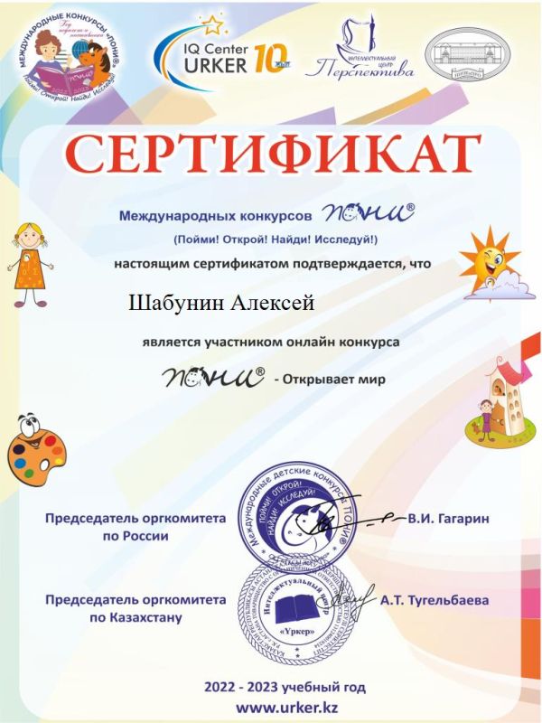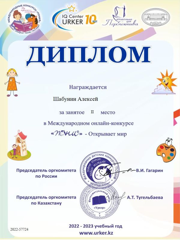 4ж сынып оқушысы Шабунин Алексейді "Пони" халықаралық байқауында 2 орын алғаны үшін құттықтаймыз - әлемді ашады! Алексейге жаңа жеңістер тілейміз!