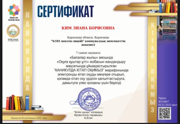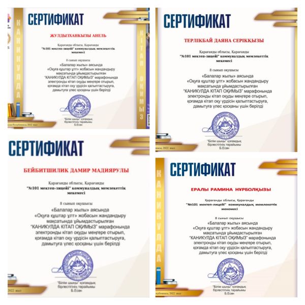 “Оқуға құштар мектеп” жобасын жандандыру мақсатында ұйымдастырылған «КАНИКУЛДА КІТАП ОҚИМЫЗ» республиқалық марафонына қатысып 5 “Д&…