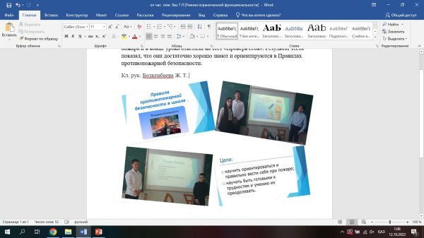 7-сыныпта "мектептегі өрт қауіпсіздігі ережелері"тақырыбында сынып сағаты өтті. Балалар өрт туындаған жағдайда мінез-құлық ережелерімен танысып, сабақ соңында "Өзіңді тексер"те…