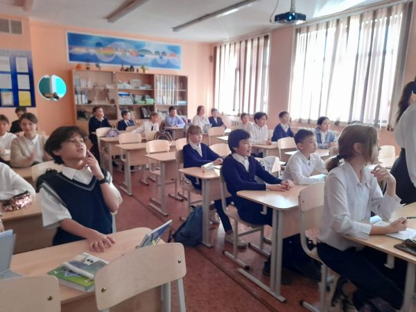 5 «в» сыныбында Республика күніне орай «Менің елім Қазақстан» атты сынып сағаты өтті. Сабақ kahоot бағдарламасы негізінде ойын түрінде жүргізілді. Сынып жетекшісі: Мүслимов…