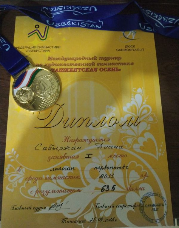 6" А "сынып оқушысы Сабыржан Диананы көркем гимнастикадан"Ташкент күзі"халықаралық турнирінде 1 орын үшін құттықтаймыз. Ташкент қ. 25.09.2022 ж. Сабыржан Диананы Ташкент қаласы…