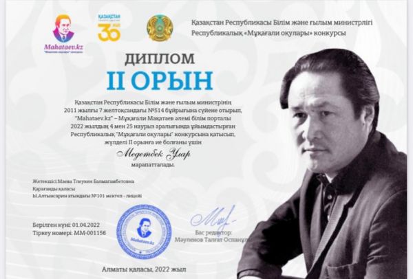Зейнулла Айзере 2 орын, Орақбаев Темірлан 2 орын, Орынбасар Дәулетияр 2 орын,…