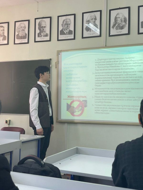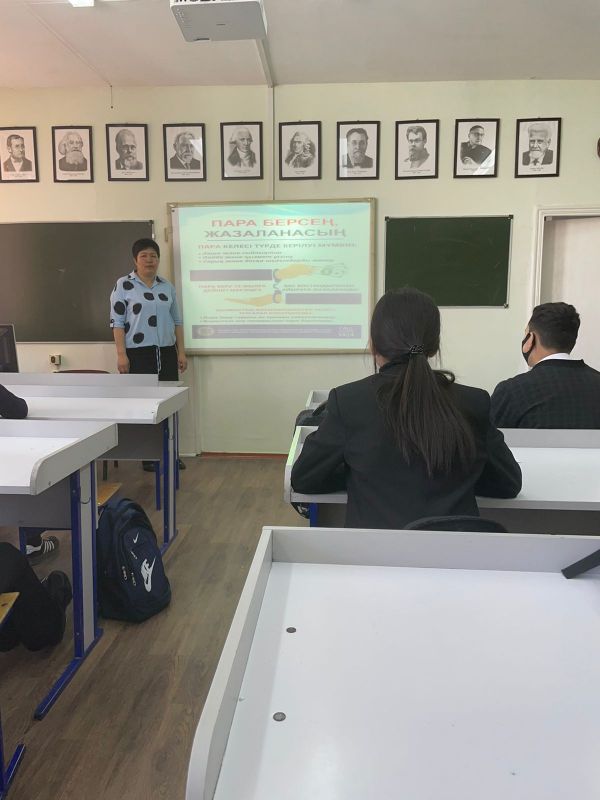 "Адал Ұрпақ" курстық бағдарламасы бойынша 8 "В" сыныбында (Сынып жетекшісі: Абдрахманова Б.Н.) "Пара берсен жазаланасын" атты сынып сағаты өткізілді.