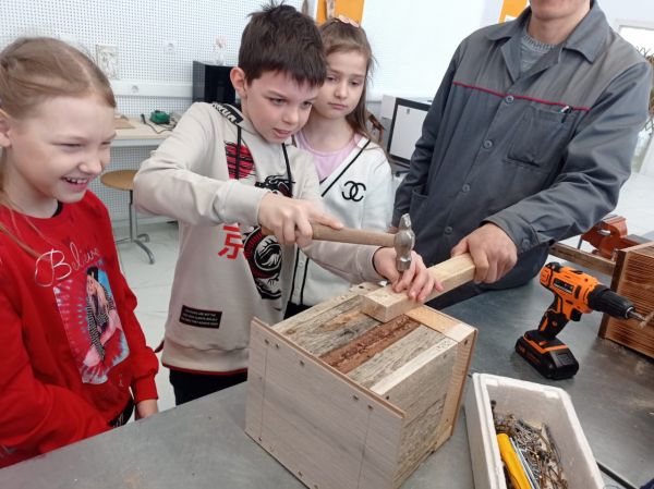 На весенних каникулах учащиеся 3 «Г» и 3 «З» классов посетили Дворец школьников. Дети принимали участие в изготовлении скворечника: сверлили отверстия для крепления, забивали…