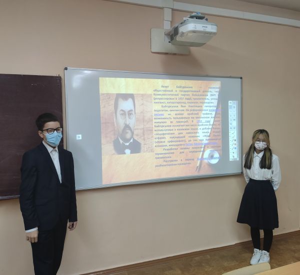 06.12. В рамках недели исторической грамотности «На волнах истории» в 8 «Д» классе был проведен классный час на тему «Ахмет Байтурсынов -великий сын великого народа&raq…