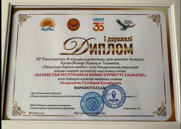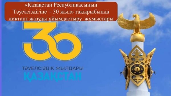 Қазақстан Республикасы Тәуелсіздігінің 30 жылдығына орай білім алушылардың мемлекеттік тілде жазу мәдениетін дамыту, сауаттылығын қалыптастыру, мәтін мазмұны ар…