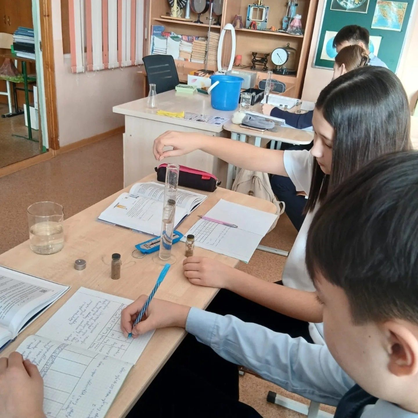 В 7 классах лабораторная работа "Условия плавание тел". Дети экспериментально увидели, как работает выталкивающая сила