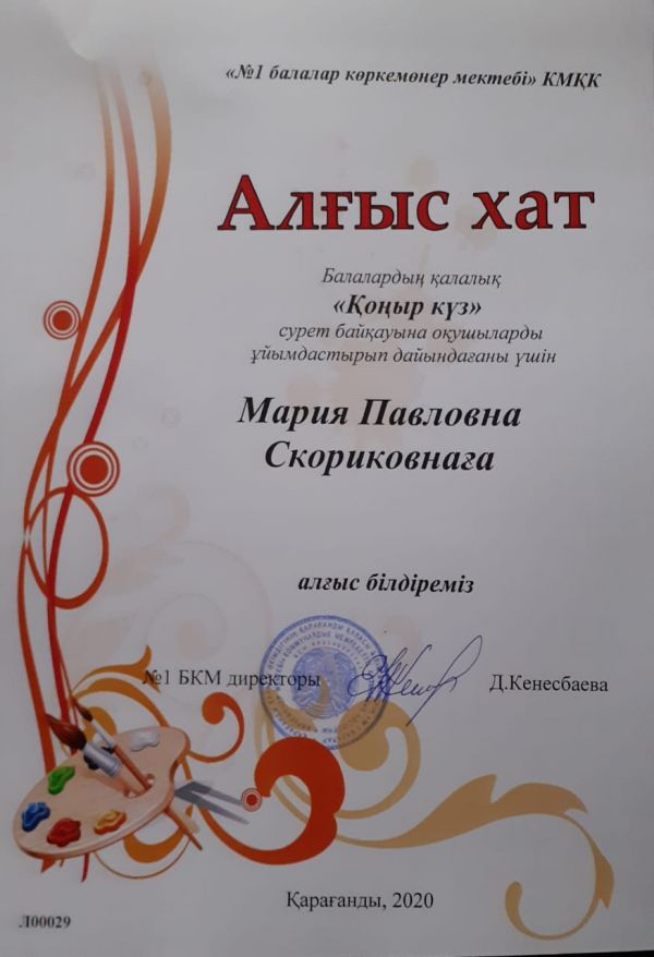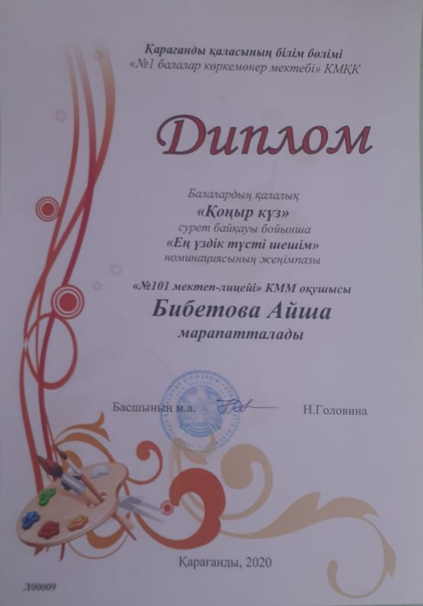 Поздравляем Үсенбай Айсұлу ученицу 4 Е класса за получение Гран-при в V Республиканском конкурсе " Жарық жұлдыз" в жанре "Көркем сурет".