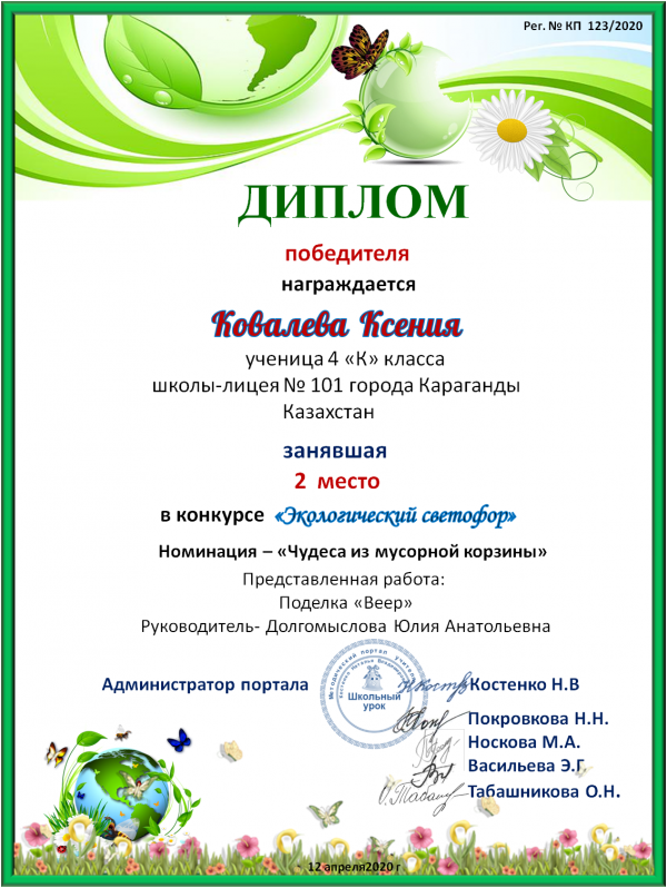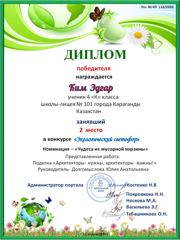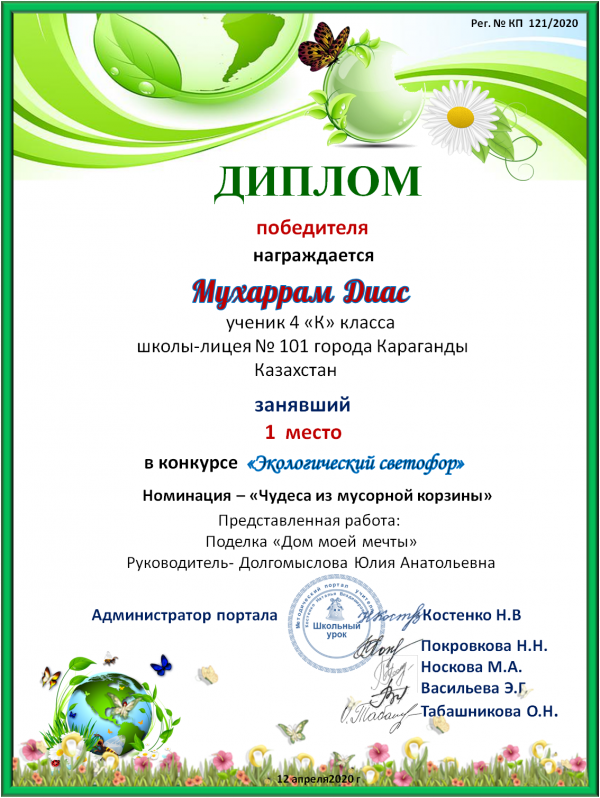 Учащиеся 4 «К» класса приняли участие в Республиканском конкурсе проектов "Экологический светофор" 4 "К" класс. Мухарраму Диасу и Ынтыкбекову…
